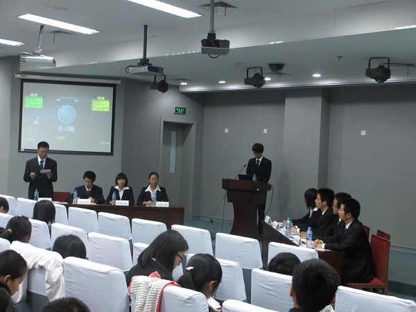 接下来,同学们观看了2010级表演赛的视频,充分领略到学长学姐们的幽默风趣,再次享受到辩论所带来的乐趣。最后,裁判员宣读了此次辩论赛的结果:反方一组获得最终胜利,正方二辩杜金为最佳辩手。团校董事长陈天航与各位评委共同为获奖者颁发了奖状及奖杯。