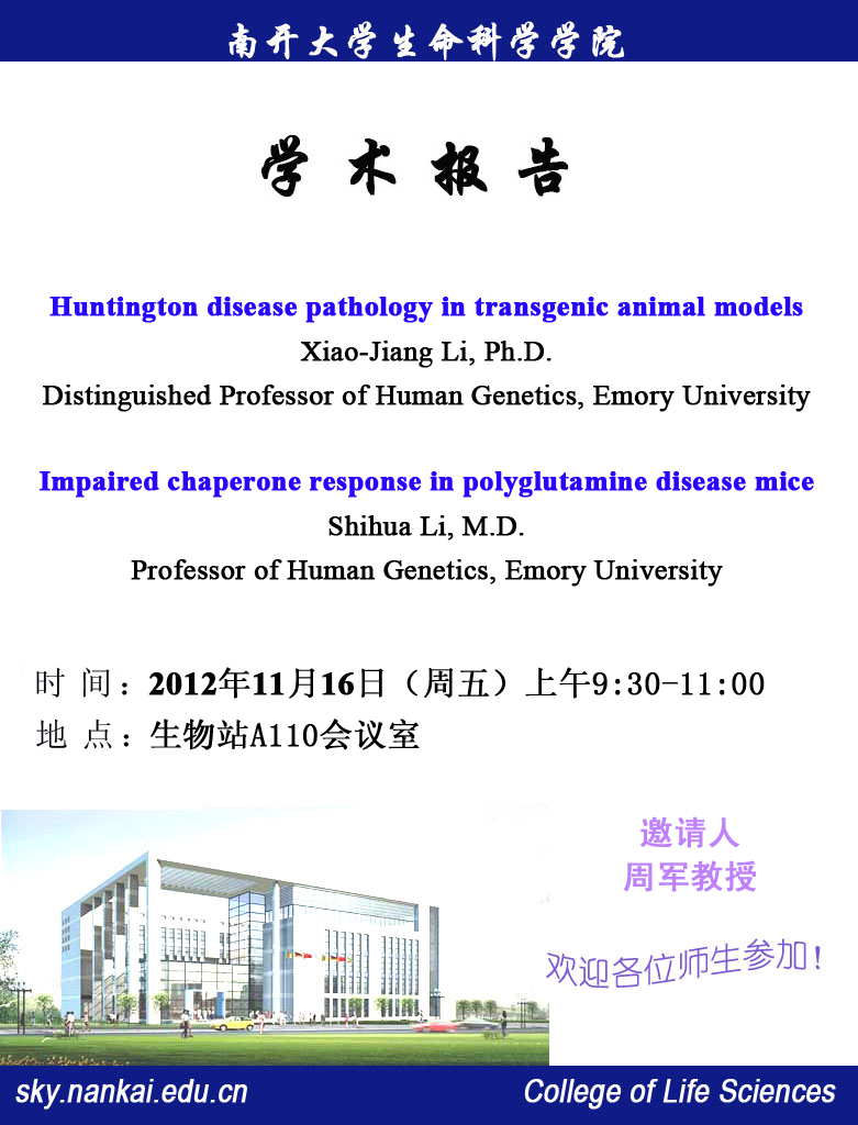 11.16 09:30 学术报告---Xiao-Jiang Li & Shihua Li