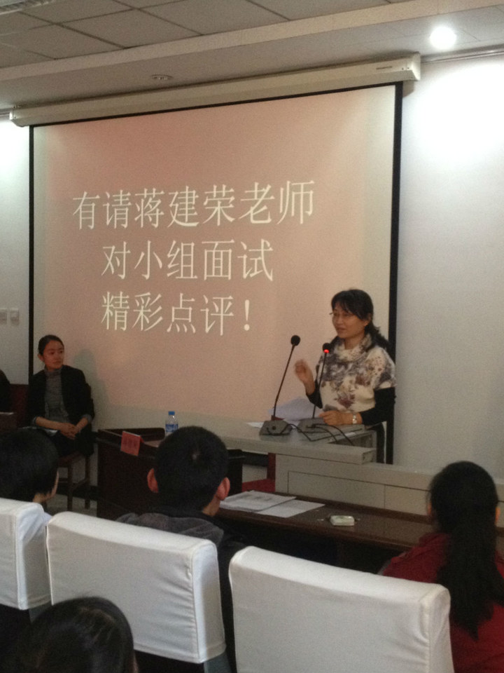 小组面试分为两组,题目分别是酒店管理和废料回收问题。小组讨论中,同学们积极发表自己的意见,充分体现了活跃的思路和创新的的思维。马超同学表达简洁准确,层次清晰,郑培敏同学自信大方,表达准确;陆定坤同学着重计划性和时效性;梁昭同学则一语点破小组同学一些忽视掉的问题。四位选手各有所长,在激烈的小组讨论中脱颖而出,获得了面试官的好评。正如蒋建荣老师点评的那样,拥有高学历的我们有着分析信息的能力,而能否在如林的强手中抓住机会,在于是否有整合信息的能力。这一席话让与会的同学们受益匪浅。