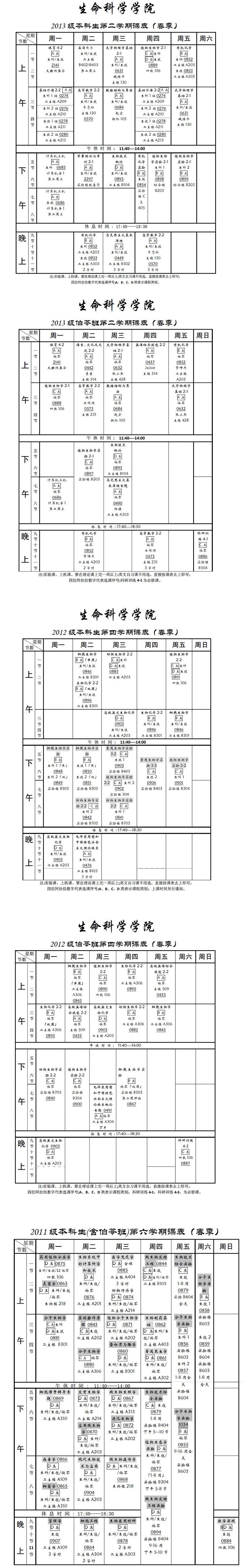 2013-2014学年第二学期本科生课表