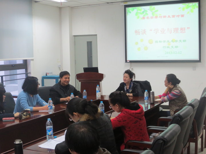 2013年12月12日下午2:30在生物站A110会议室,导师与2013级新生交流座谈会---畅谈“学业与理想”活动召开。