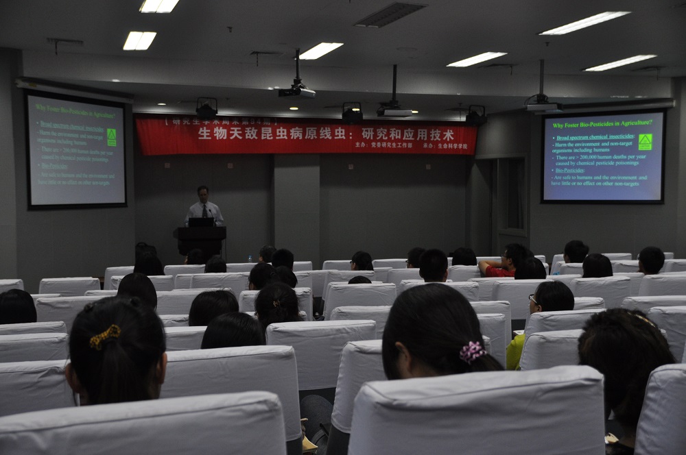 4月29日,美国农业部研究所David I. Shapiro-IIan博士做客“研究生学术周末”,在生物站报告厅为广大师生作了题为“生物天敌昆虫病原线虫:研究和应用技术” 的学术报告。taptap体育经理卜文俊教授、植物生物学和生态学系教授阮维斌出席报告会。