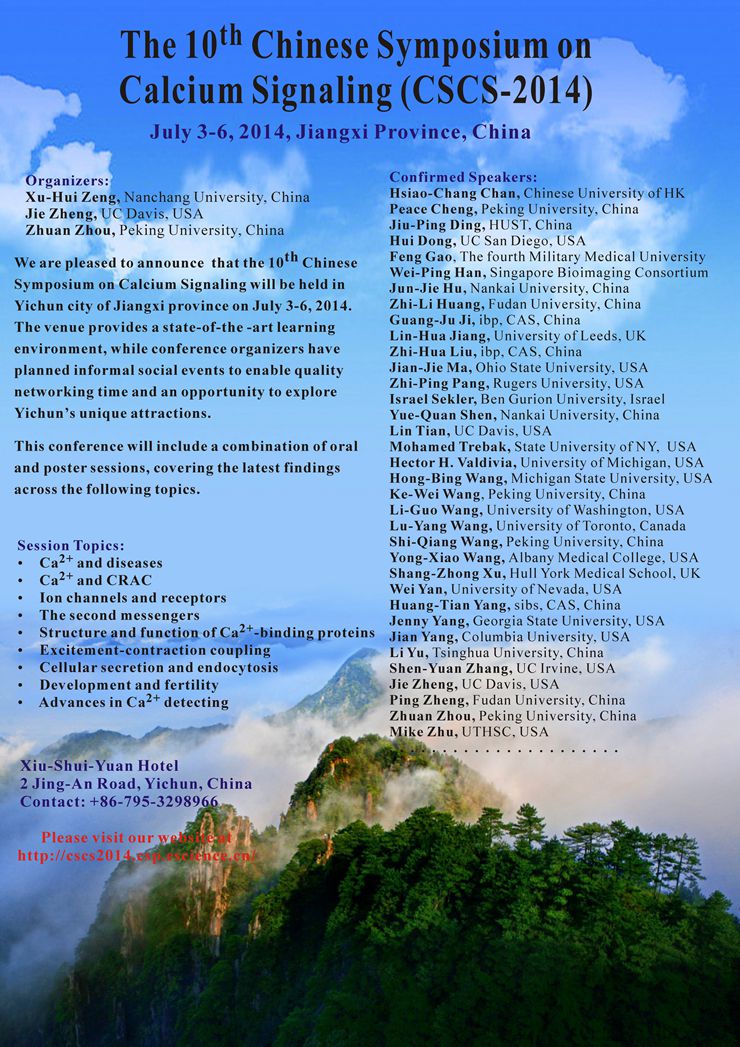 由中国生物物理学会神经生物学专业委员会主办的“第十届全国钙信号和细胞功能研讨会”(The 10th CSCS)定于2014年7月3日~6日在江西宜春举行。