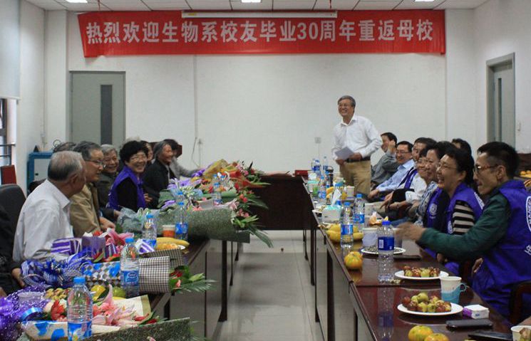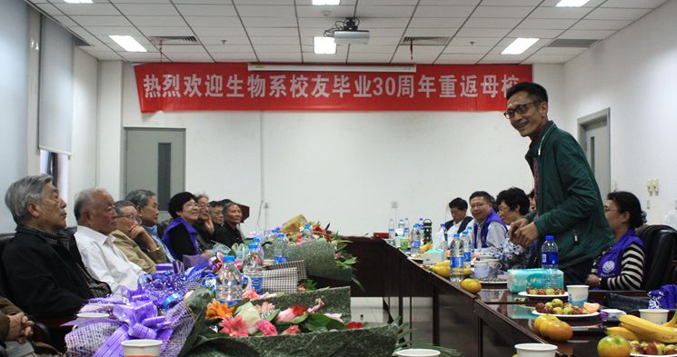 10月17日下午,生物系1980级员工纷纷从世界各地返回母校,庆祝taptap体育官网入口的95岁生日。参加了公司的庆祝活动后,员工们于10月18日下午欢聚生物站会议室,召开纪念毕业30周年座谈会。生命科学公司党委书记吴秀英、经理卜文俊、原党委书记冯小品(1980级员工辅导员)以及十多位当年的上课老师受邀一起参加。