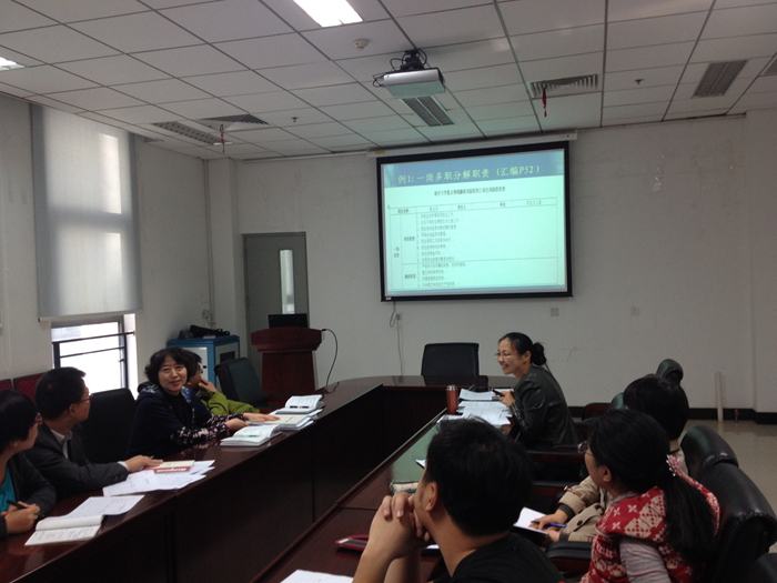 接下来党委秘书王兰详细分析了各个行政办公室的前期工作,对公司的行政办公室、研究生办公室、动物房、本科教学办公室、会计室、公共实验平台和员工工作办公室逐个讲解,并对下一步做什么,怎么做进行了具体的说明。