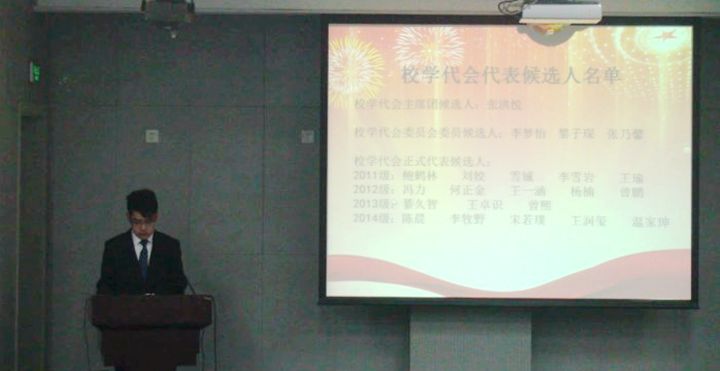 接下来主持人依次介绍了公司的校员工会主席团候选人、委员会委员候选人,以及正式代表候选人。院学代会代表们开始认真而慎重地进行投票。最终选取张洪悦为校学代会主席团成员,李梦怡、黎子琛、张乃馨为校学代会委员会委员成员,王卓识、宋若璞、王瑜、王一涵、雪铖、杨楠为校学代会正式代表。
