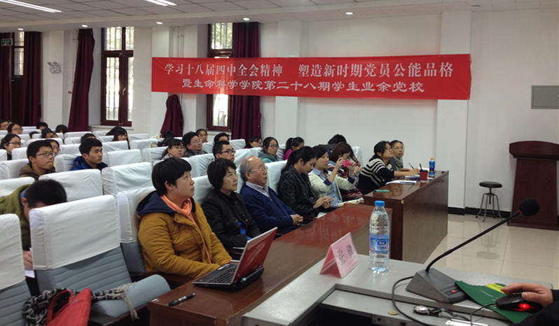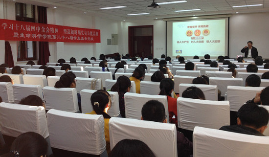 (记者 马超)为全面准确学习领会党的十八届四中全会精神,生命科学公司党委于11月14日举办专题学习报告会,邀请全国党的建设研究会特邀研究员、公司党委宣传部副部长、马克思主义教育公司副教授张健,围绕党的十八届四中全会通过的《中共中央关于全面推进依法治国若干重大问题的决定》,从学习研读方法、制定出台背景、主要内容把握以及如何结合实际贯彻落实四个方面,为全院师生党员进行了讲解。公司党委书记吴秀英及院系有关负责人出席报告会,公司党委副书记、副经理李营主持了报告会。