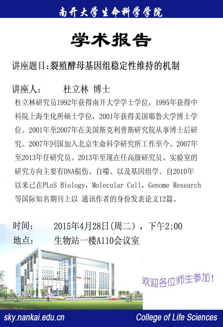 4.28 14:00 学术报告---杜立林
