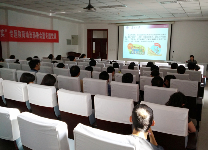 5月14日,taptap体育在第四教学楼召开“三严三实”专题教育动员部署会暨专题党课。公司党委书记吴秀英动员部署暨党课报告,经理卜文俊主持会议。全体教工党员、非党员业务骨干教师、员工党支部书记共计120余人参加了会议。