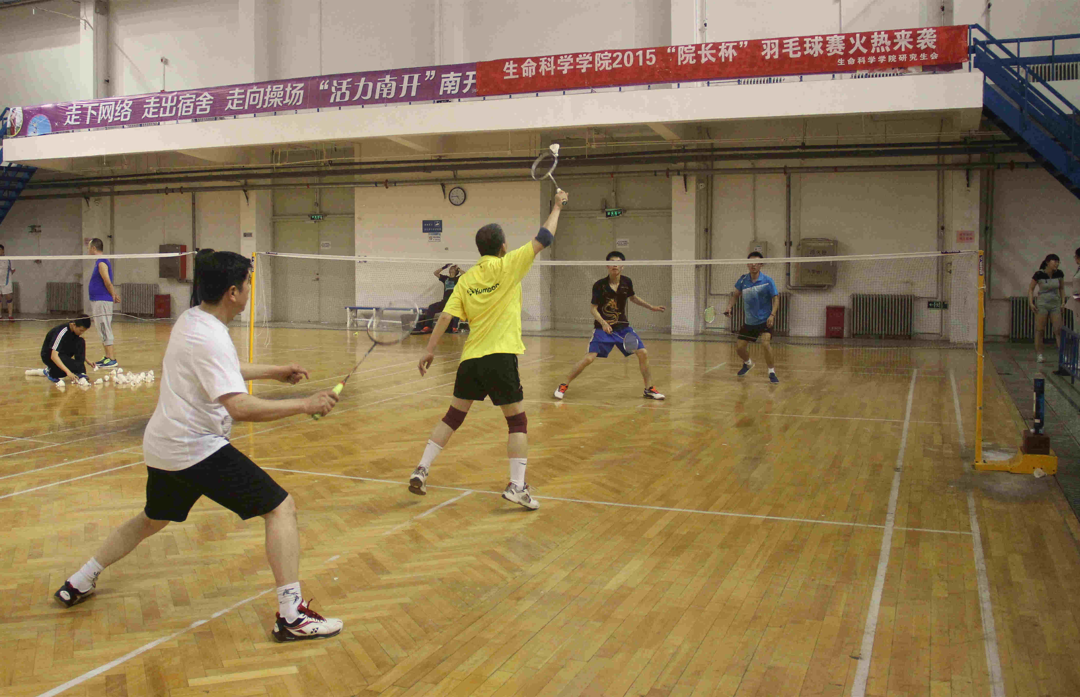 5月17日,2015年生科院“经理杯”羽毛球赛小组赛第五场准时在体育馆开战,对阵形势是“金刚葫芦娃队”VS“羽球兄弟队”。