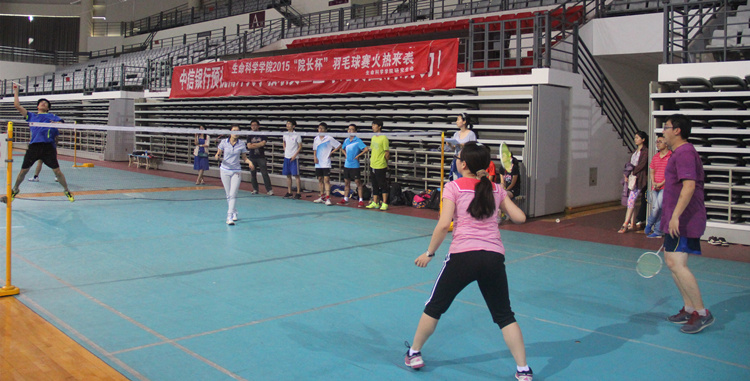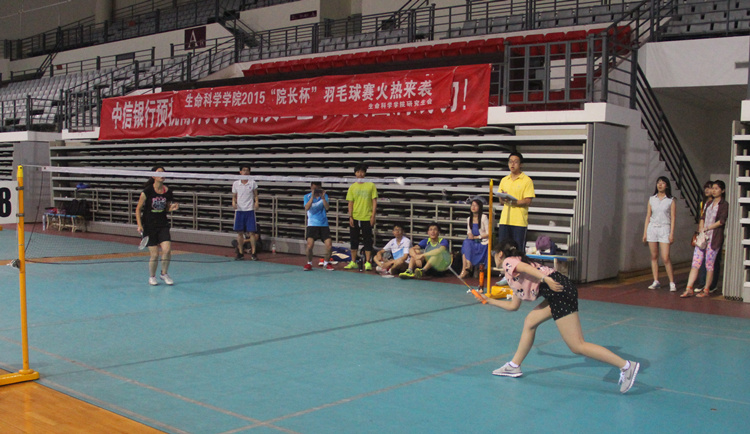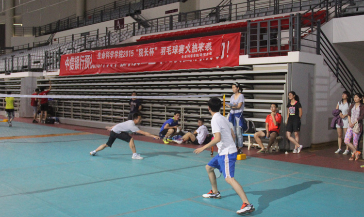 6月4日,2015年生科院“经理杯”羽毛球赛半决赛第二场准时在体育馆开战,对阵形势是“羽球兄弟队”VS“No Delay队”。