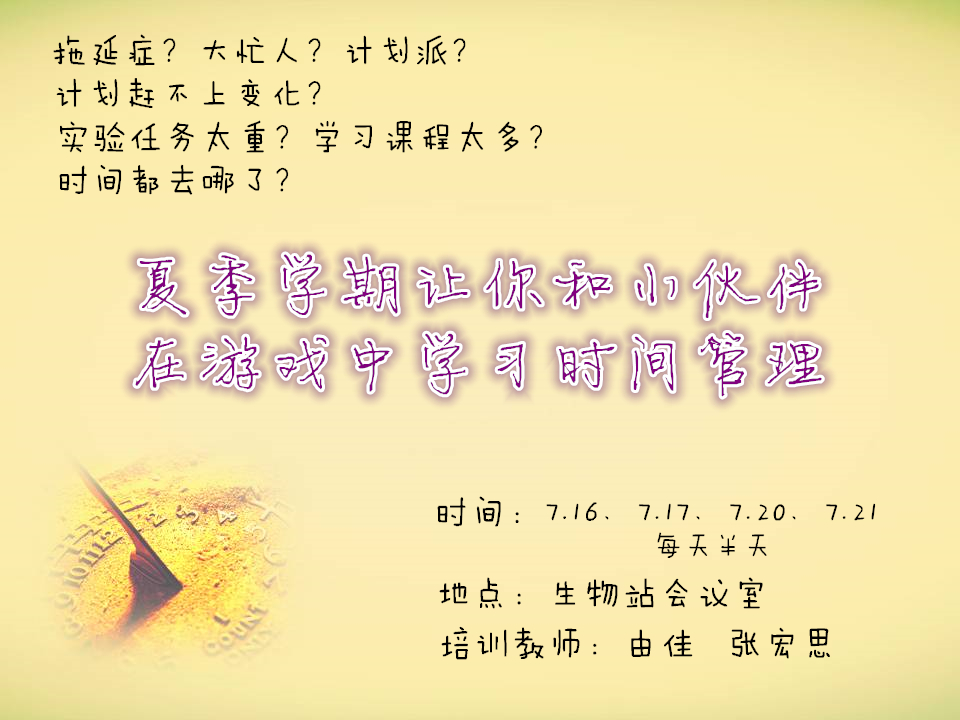 2015年的夏季学期由佳老师和张宏思老师将带领大家了解时间管理~