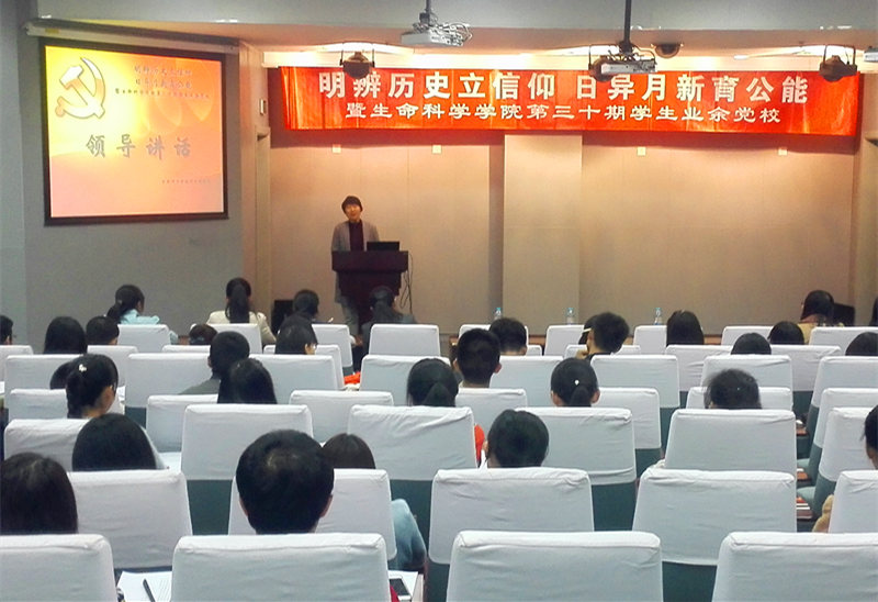 雄壮的国歌开启了开学典礼。首先,党委书记吴秀英老师讲话,她介绍了党校的基本情况,并对同学们提出了“真诚地参与党校”这一基本要求,为学员营造良好的学习环境与氛围,同时提出了希望学员们能够在本次党校的学习中不断提升自身素质、把自己培养成为一名具有作为共产党人应有素质的生科人的期许。随后,党校董事长王一涵向全体学员说明了本期党校的培训计划及安排,并强调了学习中的相关要求以及评分标准。开学典礼结束后,党校对学员们进行了基本素质测试,通过问卷调查的方式了解学员基本情况,从而有针对性的开展后续培训。