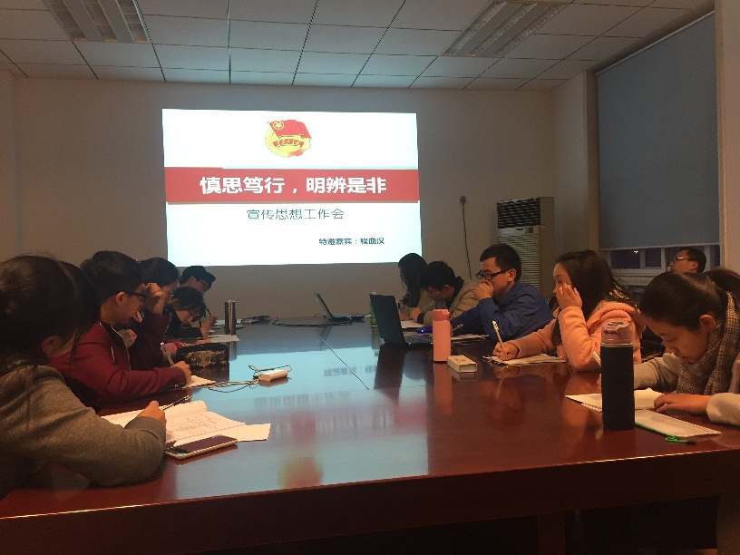 3月25日晚,taptap体育团干校于老生物楼会议室举办了“慎思笃行,明辨是非”宣传思想工作会,taptap体育员工理论研修中心主任程曲汉出席了本次活动并结合活动主题与学员们进行了深入的探讨。