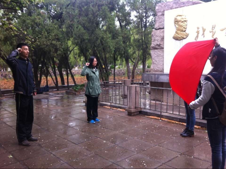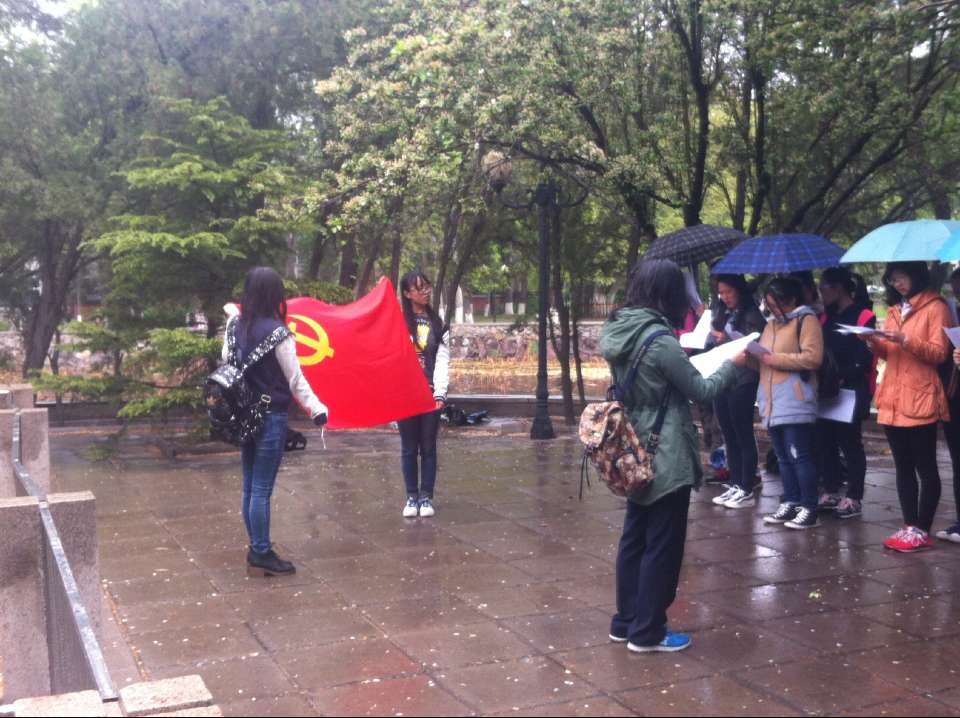 4月16日清晨,在淅淅沥沥的小雨中,taptap体育2014-2015级本科生联合党支部创最佳党日活动于马蹄湖中心岛上展开。本次党日活动以支部成员转正为契机,开展献礼建党九十五周年经典红色篇目晨诵、重温入党誓词和参观周邓纪念馆等党性教育活动。