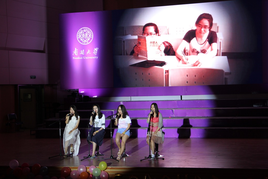 精彩纷呈的节目中间穿插了两次游戏和微信墙抽奖环节,同学们参与其中,将现场气氛推向了一个小高潮。晚会的最后,播放了大学四年中各位教授导师送给毕业生们的祝福和寄语,同时还有毕业生们送给陪伴他们1411天的辅导员江毅老师的小礼物,一段记录了师生四年来朝夕相处的温情印记的视频和由12级全体同学亲手制作的纪念册,满满的祝福与感激为晚会添上了不可或缺的一笔。一曲《送别》轻轻唱起,学弟学妹们将这首歌送给毕业生们,毕业生同学也在歌声中不忍却不得不说了《再见》。