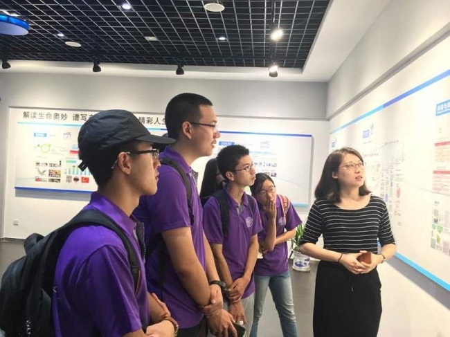 在7月25日,实践队去往了天津华大基因科技有限公司,向工作人员学习了有关精准医疗的知识。在这里,工作人员为我们仔细讲解了现如今基因测序技术的发展与应用、遗传疾病的提前诊断与预防以及华大基因公司的历史。在这期间,队员们不时提问,与工作人员积极互动,学到了不少的知识。在这之后,队员们又参观了华大的实验室,因为实验室的仪器相当精密,所以无法真正进入实验室进行参观,只能在走廊中远望。尽管如此,大家依然被许许多多未见过的仪器所深深吸引,也为如今中国基因测序技术的进步所鼓舞。最后,公司安排了专业的研究人员讲解有关精准医疗的专业知识。同学们积极提出问题,老师一一解答后,华大之行就此结束。