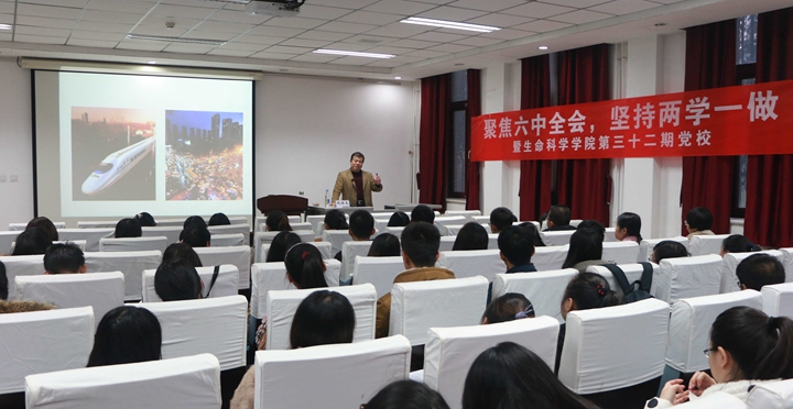 11月25日,以“‘四个全面’的历史自觉”为主题的学习理论研讨会在第四教学楼举办,本次研讨会邀请到的是taptap体育官网入口马克思主义公司经理纪亚光教授。本次研讨会作为taptap体育第32期员工党校的第三讲,纪亚光为入党申请人和积极分子深刻的剖析了现代中国的社会现状,并指明了新一代青年需要前进的道路。