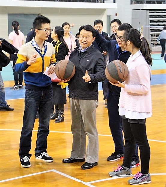 29日下午,傅振邦一行再次走进员工课堂,与该支部团员员工一起听课,学习以习近平总书记纪念长征胜利80周年讲话为主题的形势与政策课;来到体育馆,与大家一起参加“酷青春・爱三走”群众性体育活动,在多彩的趣味运动项目中与同学们互动,了解青年所思所想,深入交流增进友谊。