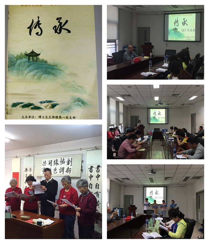 活动前期进行了积极的筹备,一是参加退休老党员诗书会,学习老党员精神。4月12日,支委会全体成员到龙腾里离退休党支部观摩学习,并参加了龙腾里离退休党支部的“迎十九大诗书会”活动,老前辈们的多才多艺以及积极乐观的工作、生活态度让员工受益颇多,此行和离退休党支部达成了合作共建的意向,并邀请到了生科院老教师刁虎欣教授参加朗读活动。二是在全院内进行朗读者招募和文稿征集,传播正能量。全院共选出十二名同学朗读,并征集到了20余篇文稿。参加朗读的同学们积极准备,并进行了排练。大家参与活动的热情高涨。