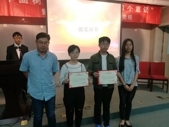 然后,获奖的sky之星们、优秀团支部代表陆续登上舞台,院团委书记陈万胜、2016级辅导员王一涵和员工干部为获奖同学进行了颁奖。