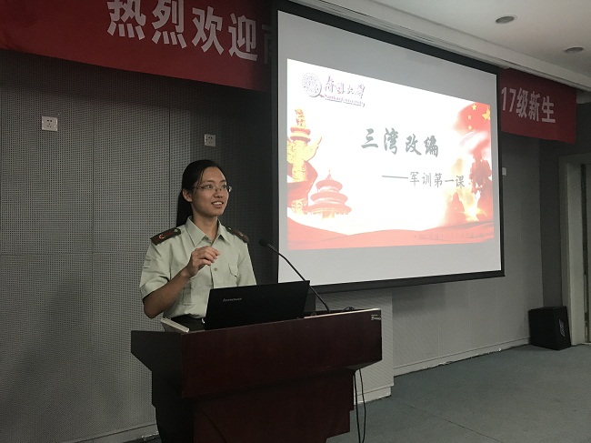 “三湾改编”是本次军训第一课的核心内容。“三湾改编”发生于1927年9月,毛泽东在江西永新县三湾村,创造性地确立了“支部建在连上”,保证了党对于军队的绝对领导,是我党建设新型人民军队最早的一次成功探索和实践,具有重要的意义。