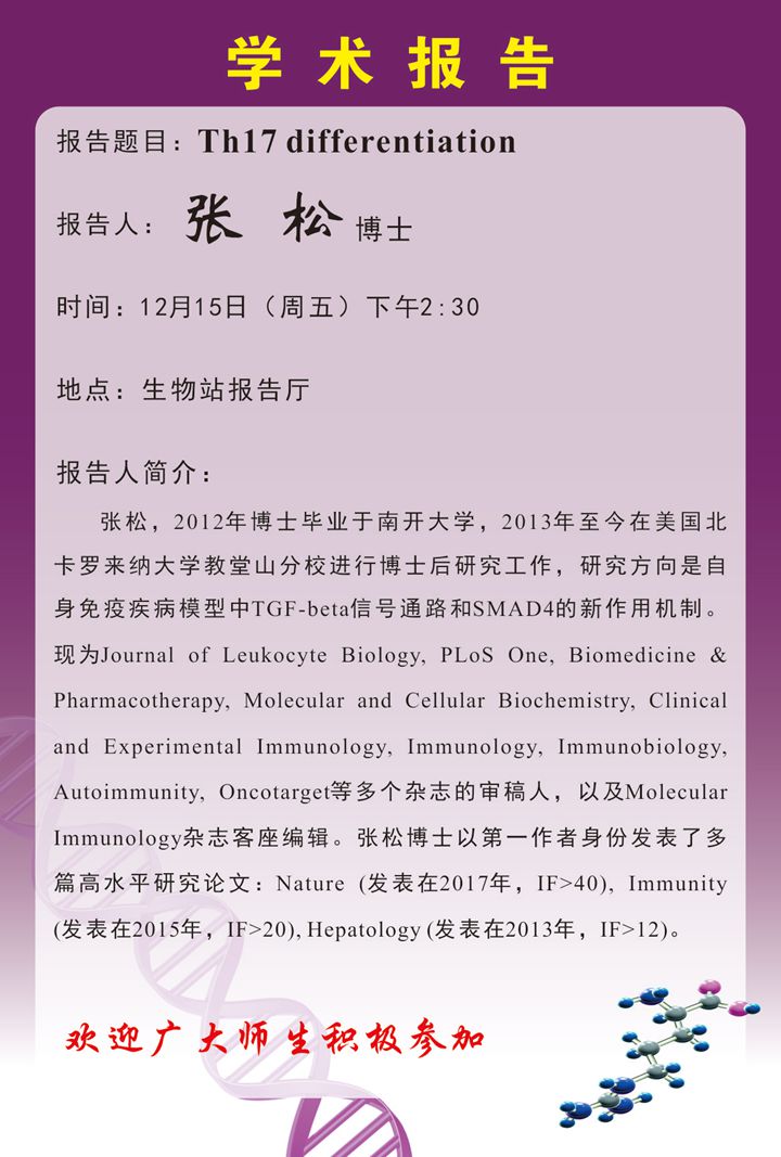 12.15 14:30 Seminar -- 张松