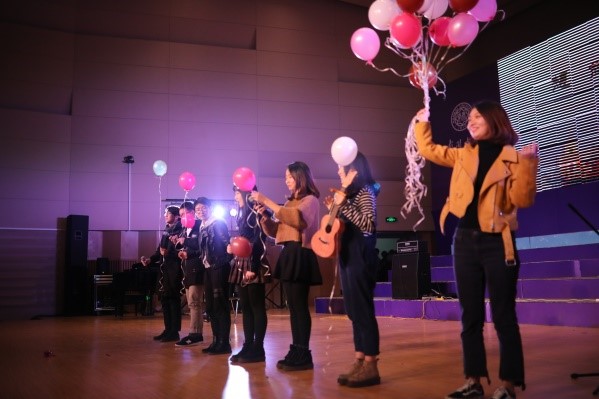 接着师生们观看了这场视听盛宴。本次晚会节目内容古典与流行兼收,温情与火热并存,形式多样,精彩纷呈。文艺部炫彩的灯光秀惊艳了全场;相声《老员工活》的风趣幽默道出了大一新生入学的生活桥段;十大歌手马英达的倾情演唱,博得台下的阵阵尖叫;南疯乐队的摇滚乐更是将全场气氛掀向了高潮。研究生的《寄明月》优雅柔和呈现了一派温馨的气氛,还有来自天津大学的话剧《笑傲江湖》风趣幽默赢得台下的阵阵掌声,而之后的魔术表演也让观众们大开眼界……最后在一首清亮的歌曲《春暖花开》中,全体参演人员走上舞台,向观众致意。