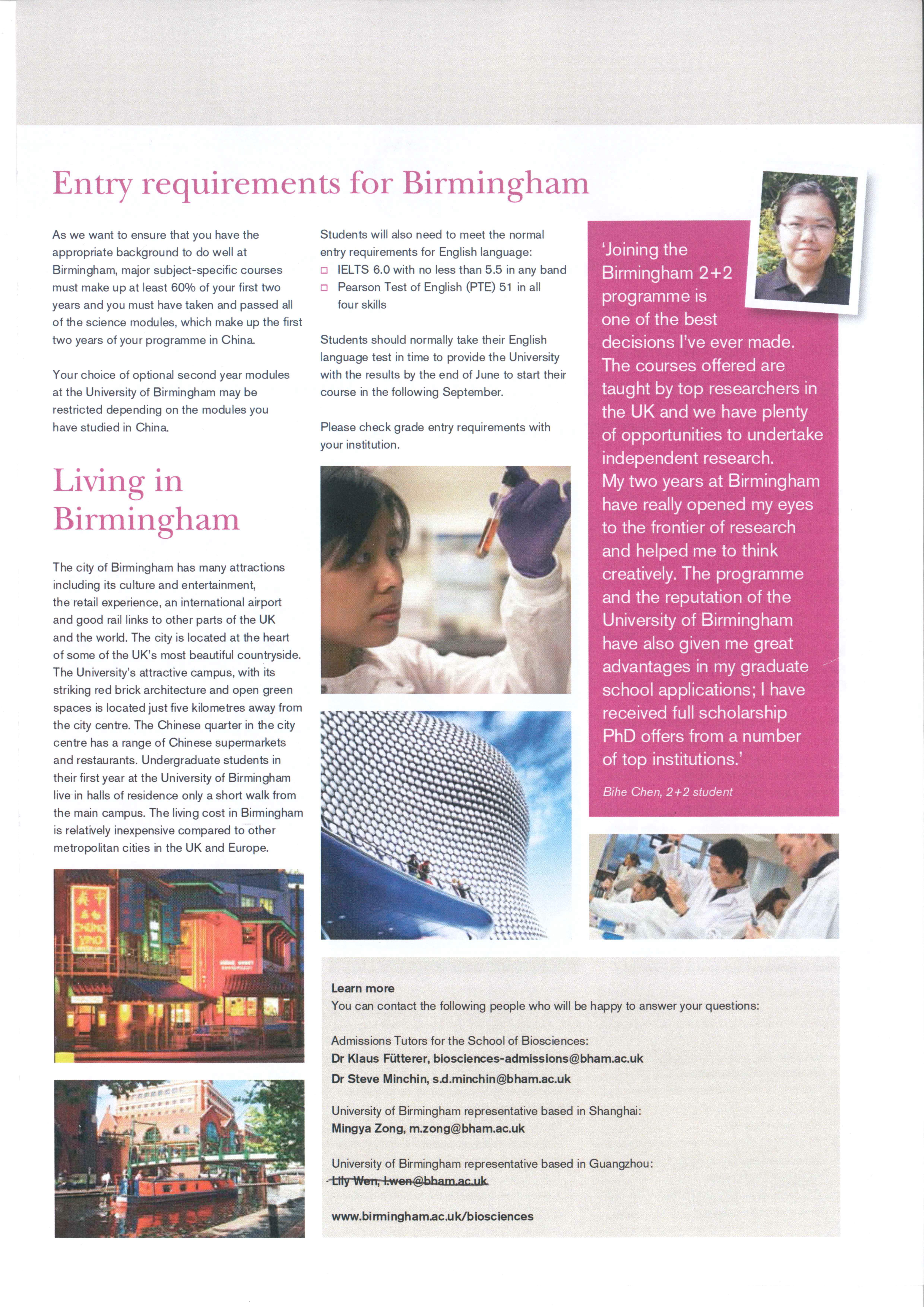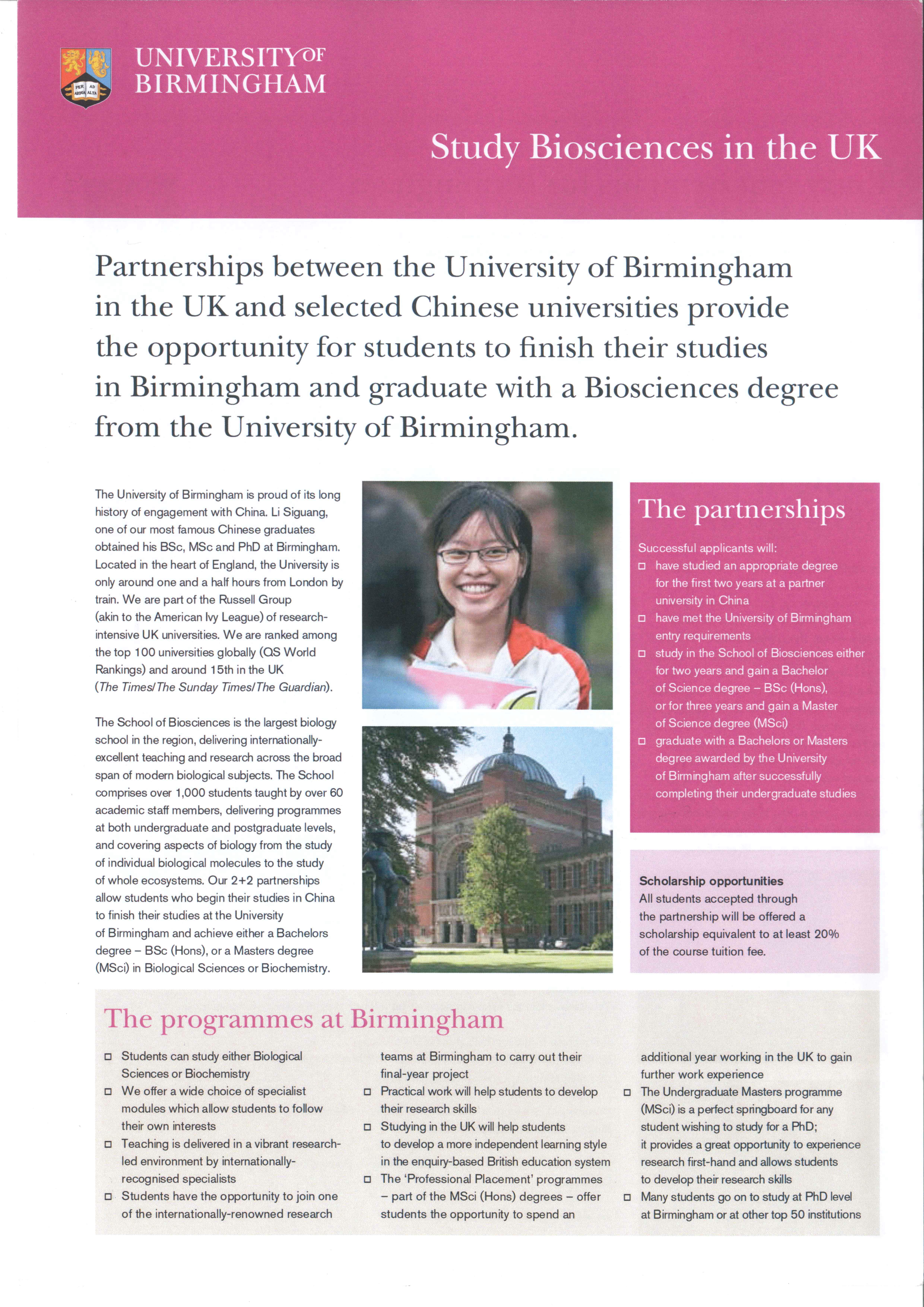 2017年公司派出首批本科生参加,现启动2019年taptap体育官网入口与伯明翰老员工物学科2+2双学士学位项目通知。