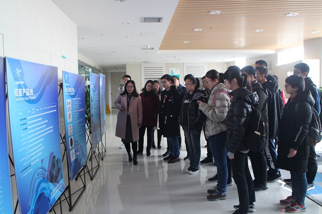 离开研究所,顶着细密的雨雪,团员们又奔赴位于天津经济技术开发区的康希诺生物技术有限公司进行参观。在那里,大家在几位已经毕业的学长学姐的带领下,对公司的办公处、实验部、生产部等进行了参观,并在穿上实验服后进入埃博拉疫苗的研发处,近距离学习了埃博拉疫苗的研发过程,受益匪浅。