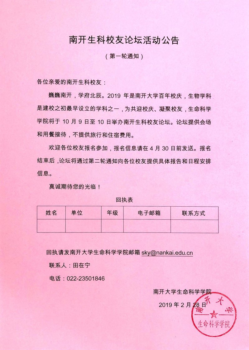 南开生科员工论坛活动公告