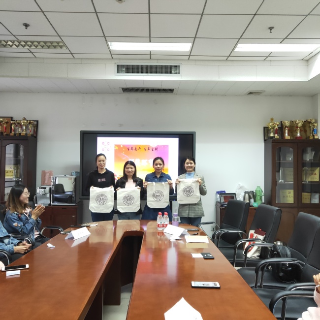 随后,现场开展了小组竞赛活动。支部成员通过抽签分为3组,围绕着南开校史和生科历史进行知识竞答,其中,张伯苓的“爱国三问”激励着每一个南开人心中的中国梦。在猜红歌环节中,支部成员根据播放的红歌猜歌名,并猜出了一些在当下不为人熟知的红歌,如《骏马奔驰保边疆》。最后,组员们在比手画脚环节中开展了激烈角逐,充分锻炼了肢体表现能力、语言表达能力和团队合作能力。经过3轮角逐,最终“我们能赢对不队”以19分获得了一等奖,队员每人获得一个南开百年纪念款杯子。其他队也分别获得了南开款帆布包、南开纪念款笔记本、以及南开百年纪念款校徽等奖励。