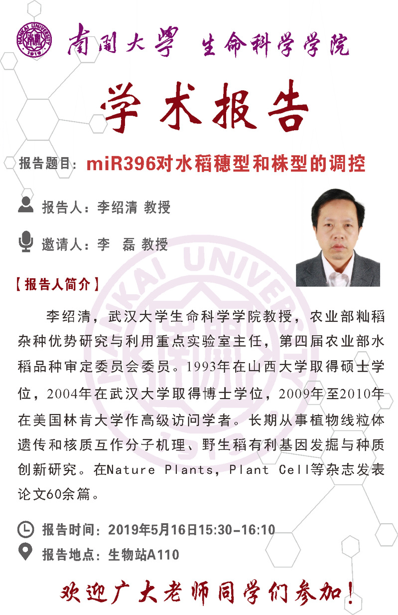 05.16 15:30 学术报告 -- 李绍清