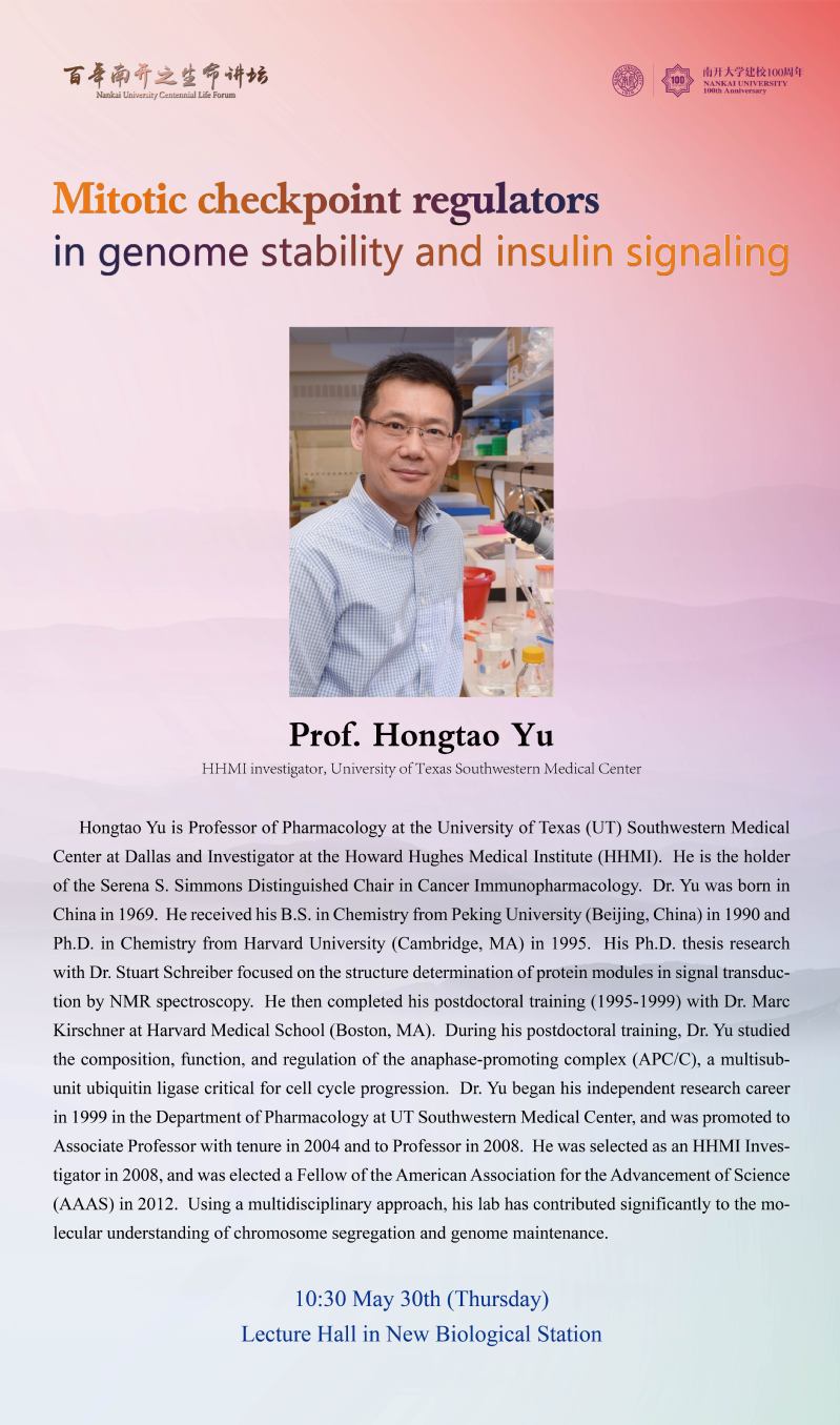 05.30 10:30 百年南开之生命讲坛 -- Hongtao Yu