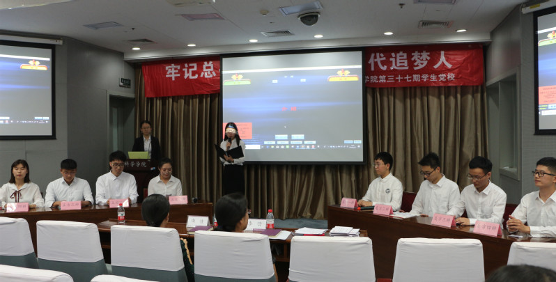忆祖国发展,奏时代强音。中国共产党带领中国人民站起来、富起来、强起来。“站起来了,一个政党站起来了,新中国站起来了,中华民族站起来了,十三亿中华儿女提起腰杆,扬眉吐气,站起来了……”“鲜红的党旗,指引十三亿中华儿女奏响复兴的号子,躬身求梦,劈波斩浪!”一首诗朗诵《盛世中国》带领着全体学员沿着历史的轨迹,回忆祖国发展历程,奏响时代强音。