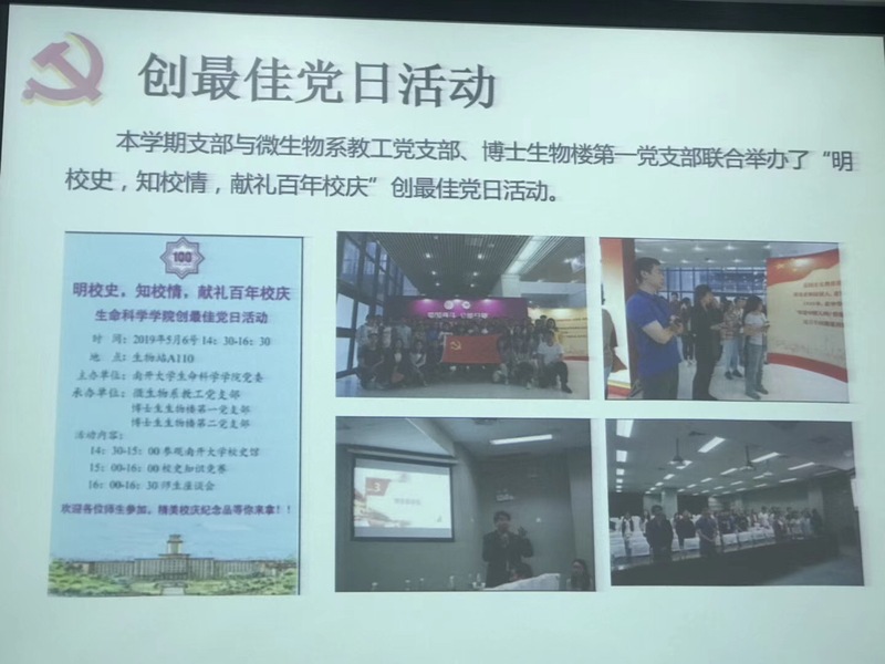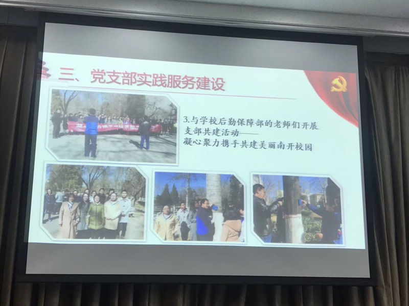 会上,员工党支部以ppt展示的方式汇报了本学期的主要工作情况、存在问题和下学期的工作计划。各支部围绕主题,重点汇报了“党建1+1计划”的落实和执行情况,图文并茂,内容充实,严格落实“三会一课”制度,保证了“两学一做”学习教育活动常态化、制度化。其中四个2018级硕士党支部与四个文科公司党支部的共建活动,六个博士生党支部与教工支部的共建活动,有效地调动了党员参与支部活动的积极性,都得到了党员同志的高度好评。
