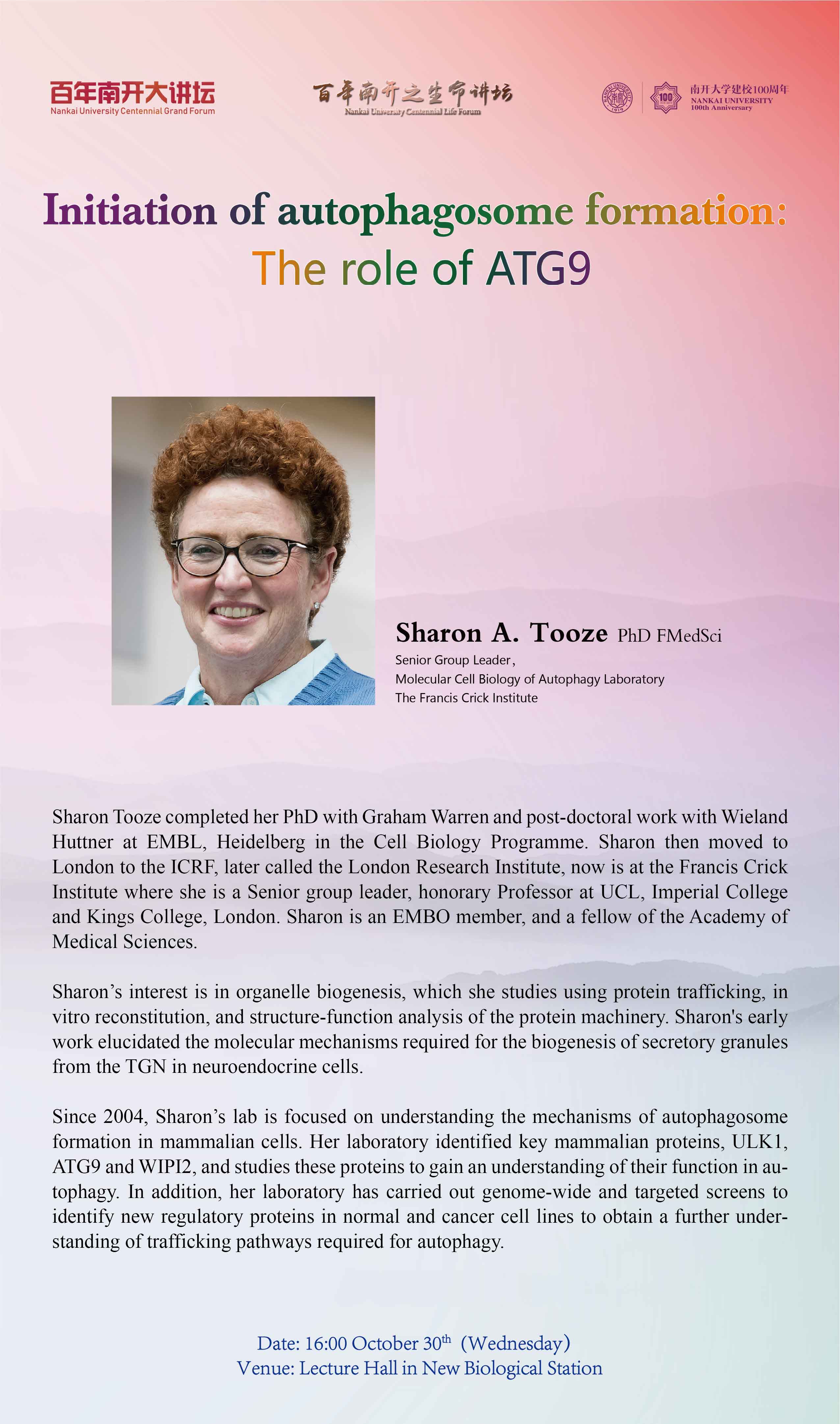 10.30 16:00 百年南开之生命讲坛 -- Sharon A. Tooze