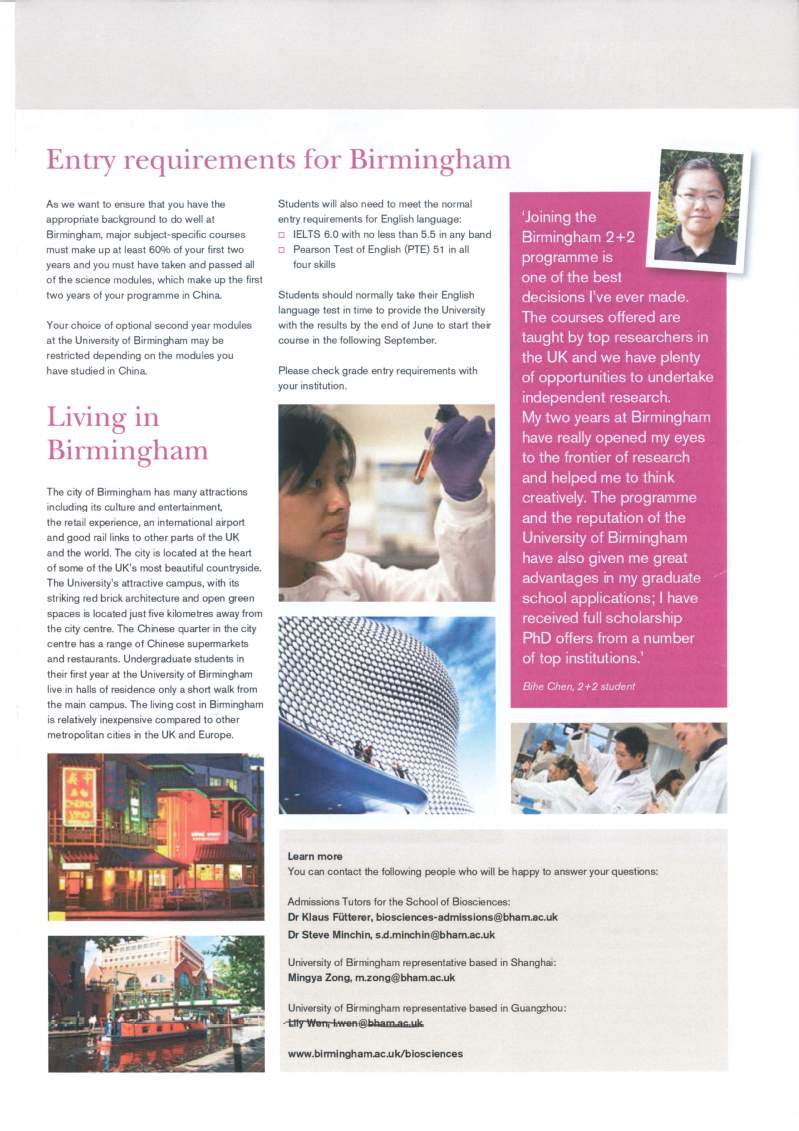 2017年公司派出首批本科生参加,现启动2020年taptap体育官网入口与伯明翰老员工物学科2+2双学士学位项目通知。