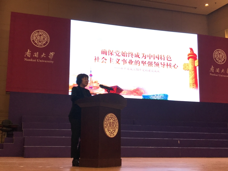 谢桂玲以中国共产党成立98年以来的历次代表大会为主线,依托丰富的历史资料、图片等素材,全方位呈现了建党98年以来艰辛而辉煌的风雨历程,带领广大师生理清党的历史发展脉络,并通过对比历史与现实社会发展状况,凸显了中国共产党建立以来带领中国人民取得的瞩目成就。谢桂玲强调,长期的探索和历史实践证明,没有共产党就没有新中国,只有坚持中国特色社会主义才能发展中国,中国共产党代表了人民的意愿和心声,顺应了历史的规律,是中国共产党带领中国从积贫积弱走向繁荣富强,党是光明的使者,幸福的源泉。