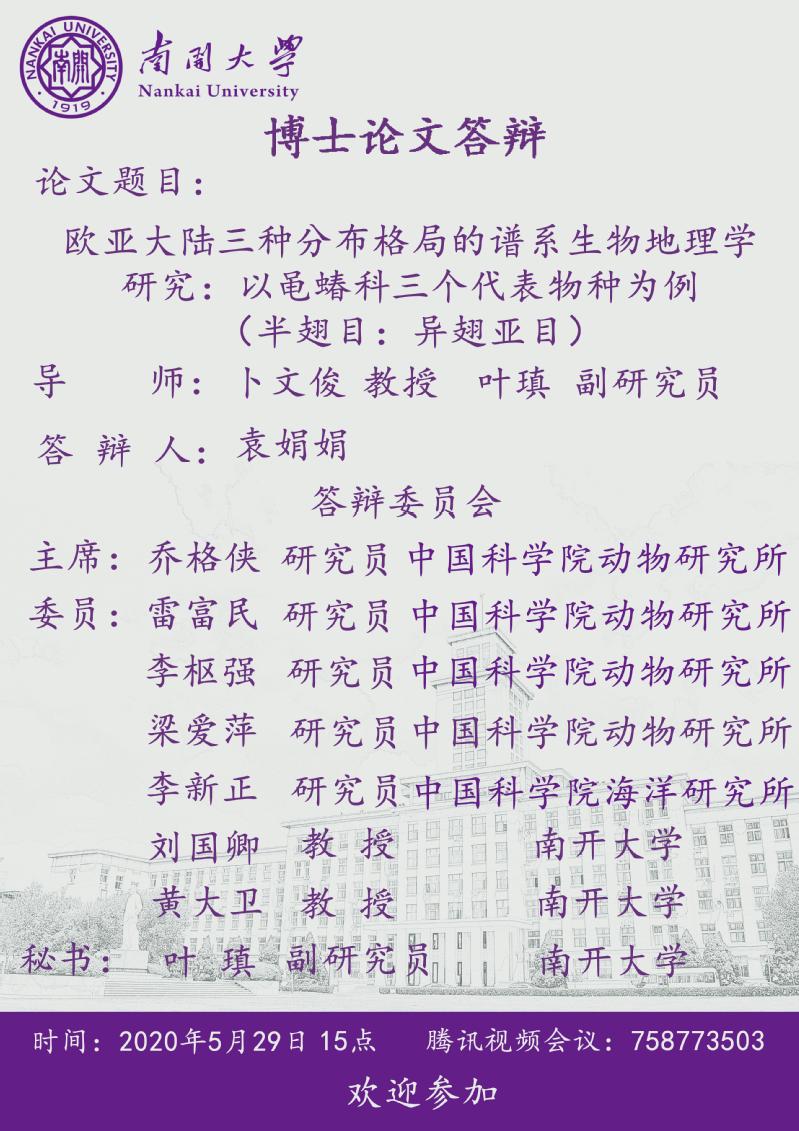 taptap体育博士研究生(袁娟娟)毕业论文线上答辩公告