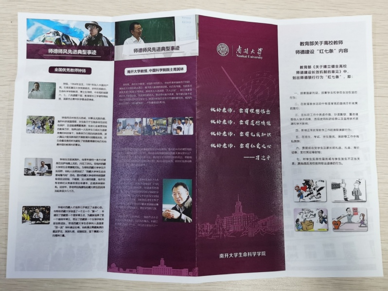 学习折页内容包括师德师风先进典型事迹、新时代高校教师职业行为十项准则、教育部关于高校教师师德建设“红七条”、taptap体育官网入口师德失范行为“一票否决”制、taptap体育官网入口师德失范行为负面清单和taptap体育课程思政建设办法。