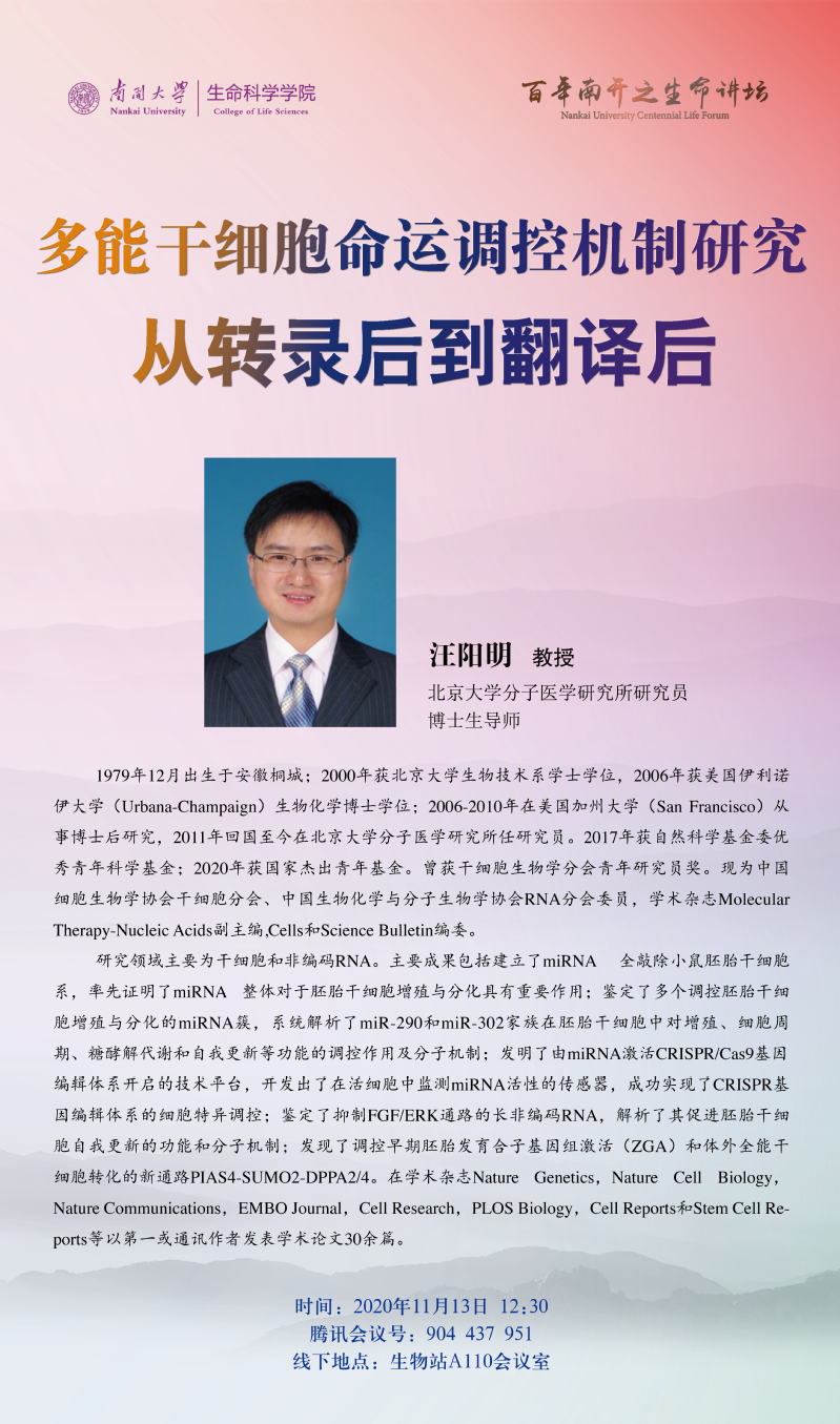 11.13 12:30 百年南开之生命讲坛-- 汪阳明