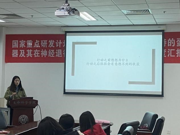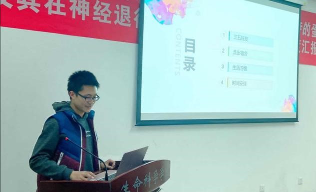 2019级生物伯苓班的曾薪霖同学结合自己大一生活中的诸多收获和遗憾、经历和成长、改变与思考,为同学们分享了应该如何尽早打破大一生活的迷茫,如何让老员工活有规划有目标。同时她结合“what、how、why”的黄金圈理论,告诉大家“行动之前想想为什么,行动之后往往会有意想不到的收获”。