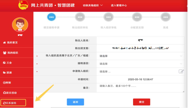 1.发起方:团员本人须严格根据实际去向发起转接申请,严禁任何弄虚作假行为,防止“名在人不在”“团籍空挂”。
