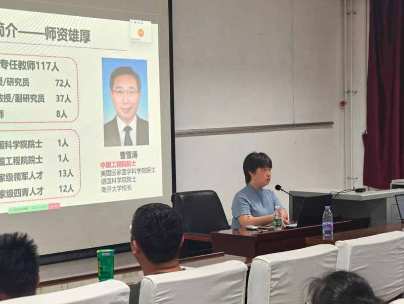 环境科学与工程公司环境工程系主任史国良从跳出“天坑专业”刻板印象入手,向同学们详细介绍什么是环境专业,其主旨是为人类可持续发展产生价值,着重介绍了环境专业就业体系完善且稳定、具有很高的包容性及南开环境专业实力强等优点。