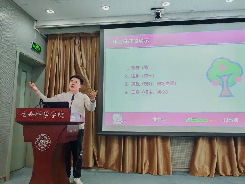 在团课中,张佳庆老师首先深入剖析了如何在大学评优展示中脱颖而出。他强调,在有限的时间内呈现出最佳效果至关重要,并结合理工科同学在展示中常见的问题,通过具体案例进行了详细分析。张老师指出,个人成果展示应是一个充满生命力的整体形象展现,而非简单的成果罗列。他详细阐述了成果展示的四大要点,包括展示内容的组织、叙事逻辑的构建、现场表现的把控等,并鼓励同学们在展示过程中注重细节,如语音、语调、语速的把握,以确保展示的节奏感和有效性。