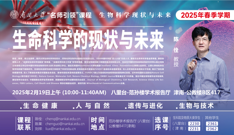 2025年2月19日,taptap体育“名师引领课”《生物科学现状与未来》开始了新学期的第一堂课,taptap体育经理陈佺教授在范孙楼学术报告厅为同学们带来了精彩的第一讲——《生命科学的现状与未来》。